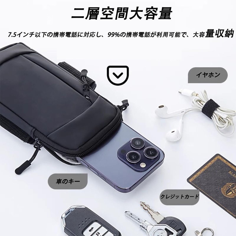 - 【スポーツに最適なスマホ向けアームバンド】 このスマホアームバンドに2つのポケットを設計しており、十分なスペースがあり、走る時にお使いの携帯電話を入れることが可能です、腕だけではなく手首にも使用できます、ショルダーバッグとしても使えるストラップがついています、さらに登山用のバックルが備え付けられており、収納に便利です、最大7.5インチの携帯電話をサポートします