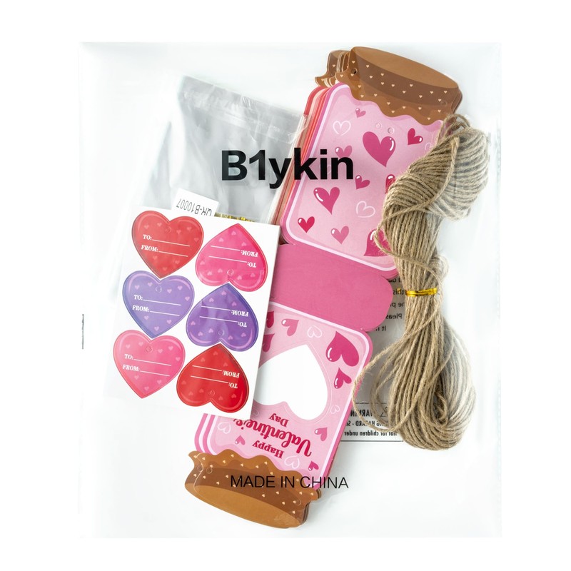 - Valentines Candy Bags: You can receive 36 mason jar cards (with 3 different styles), 6 heart hanging tags, 40 candy bags, 40 tie ribbons and a string, which you can fill with candies or small gifts as Valentine's Day gifts for your friends
