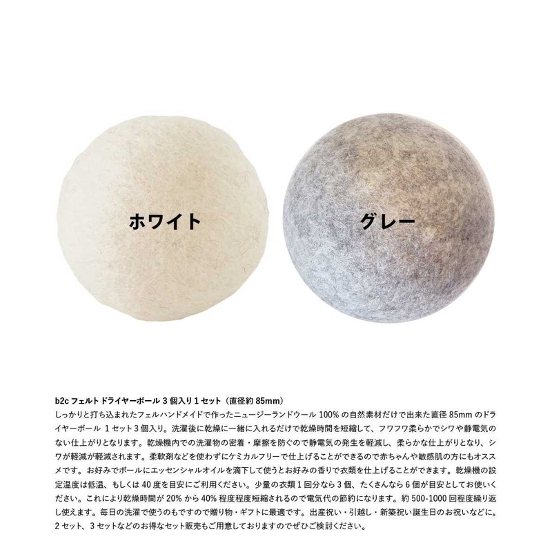 b2c Felt Dryer Ball 3 Pack (White) | Wool Ball for Dryer, Washing Ball, Laundry Ball, Anti-Static, Tangle-Free Laundry Goods