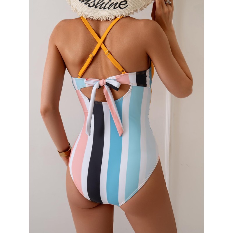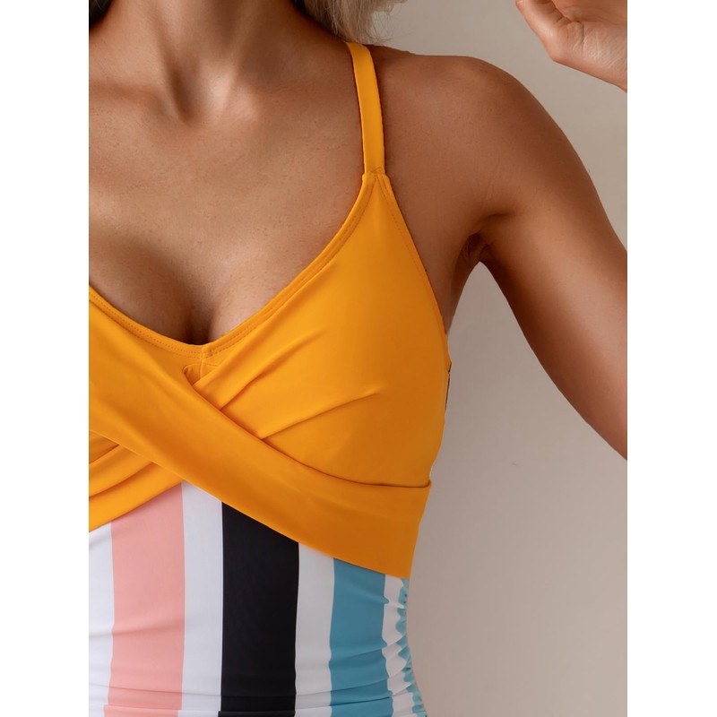 - Twist front swimsuits: Front cross and v neck design to show off a sexy style from every angle. The back tie knot and adjustable shoulder straps fit your body curves perfectly