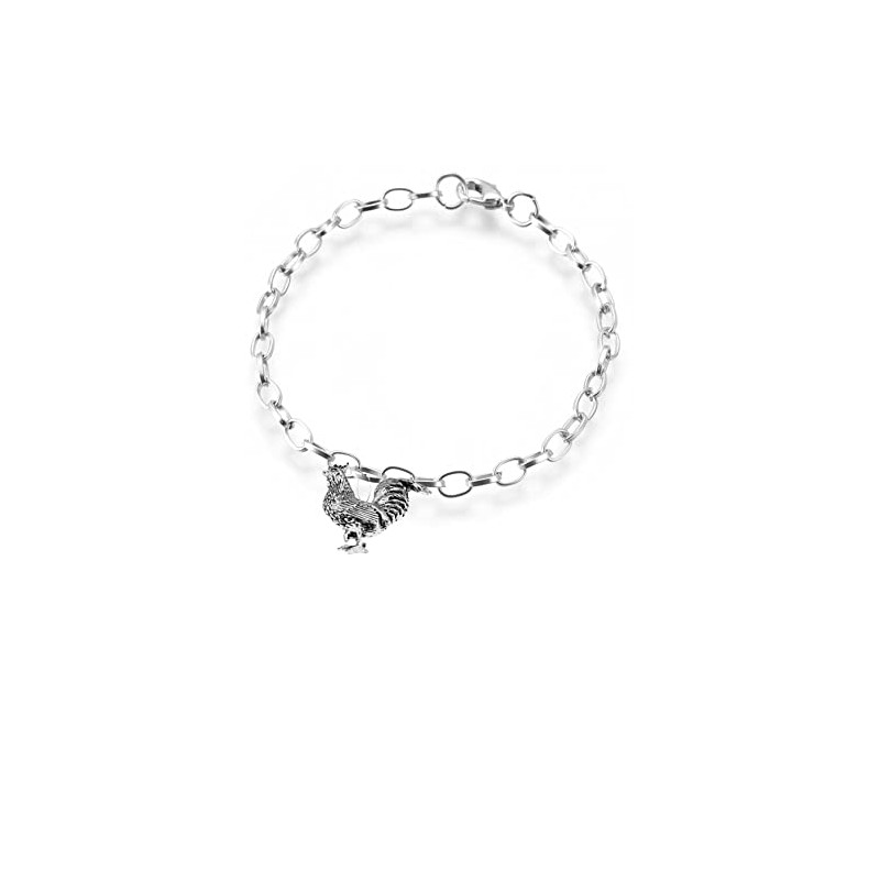 B42 Cockerel fine lead free English Pewter charm on a belcher link chain anklet bracelet