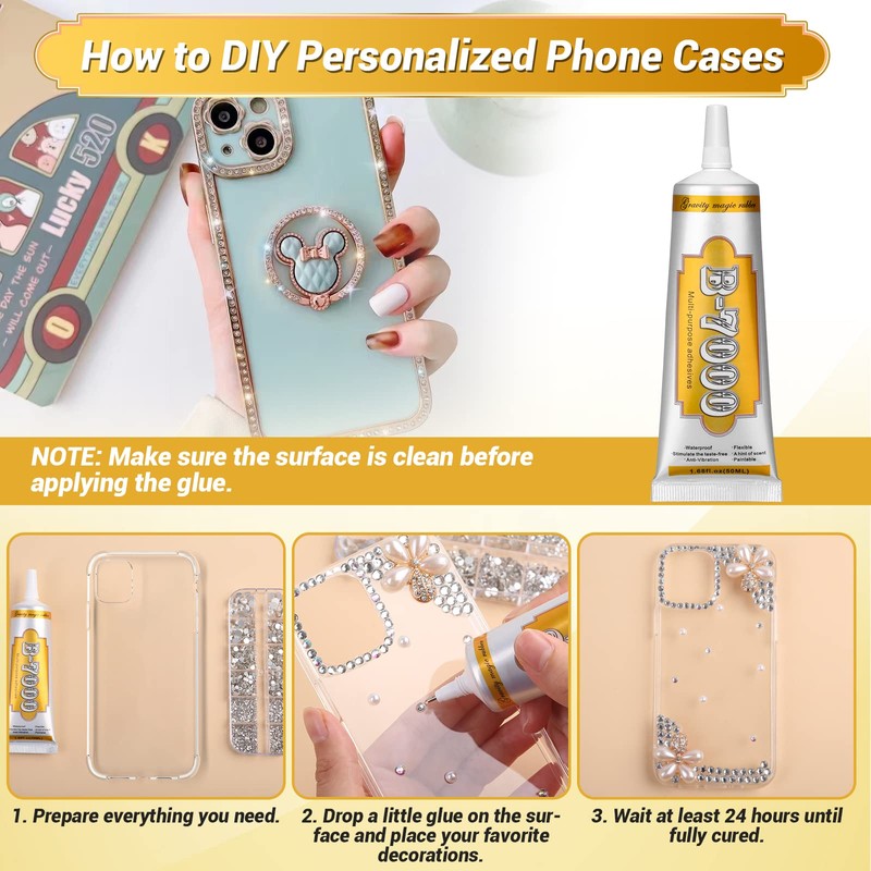 B7000 Fabric Glue with Precision Tips, Upgrade Industrial Strength Adhesive B-7000 Glue Clear for Jewelry Crafts DIY, Metal, Stone, Rhinestone Gems Gel, Glass, Fabric, Cell Phone Repair (50 ML)