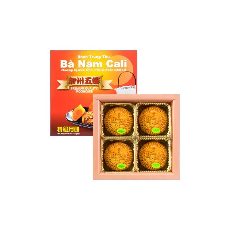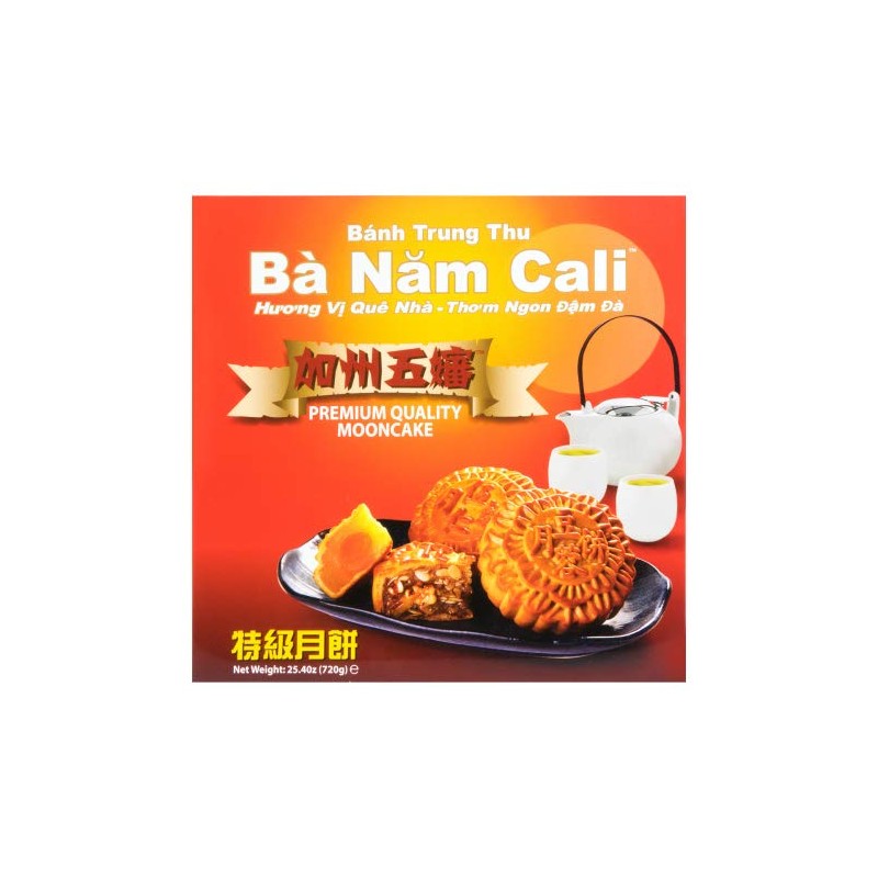 Celebrate the Mid-Autumn Festival with Ba Nam Cali Mooncake! Ba Nam Cali Mooncake comes in all different flavors like Lotus Seed, Mixed Nuts, Durian, Mung Bean, Taro, Coconut, and Pandan. Ba Nam Cali Mooncake also have an option with no egg yolk for Vegetarian eaters. Each box of Ba Nam Cali Mooncake comes with an un-sharpened plastic knife to easily cut the mooncake and four individually wrapped mooncake so that you can enjoy one mooncake while maintaining the freshness of the others. It is the perfect gift to send to your friends and family to show your appreciation of them. Buy your Ba Nam Cali Mooncake now!