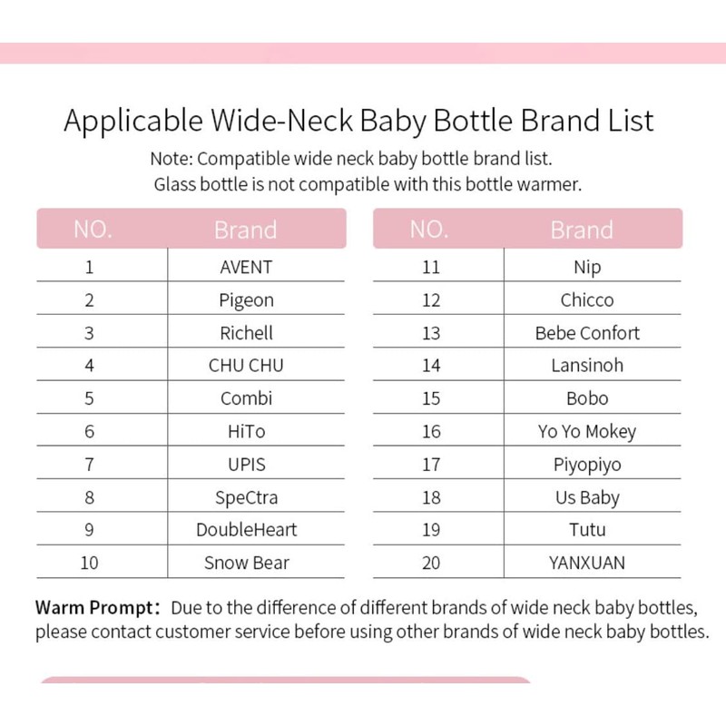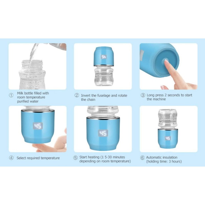 🍼Portable & Perfect for Travel: This is a portable baby bottle heater. It can be heated without cables, leak-proof and compact design so you can easily carry it in your baby bag or purse. The small size and the lightweight of our on the go bottle warmer allow you to carry it everywhere with yourself and the best part is the USB can charge your bottle warmer from the car. 🍼 3 Temperature Settings- The baby bottle warmer has a built-in temperature sensing chip for precise temperature control. Choose one out of the three temperature settings 37°C , 40°C and 45°C . Press the power button to switch the temperature setting and the milk will be evenly warm in just 8-12 minutes. Nutrients and antibodies in milk are not affected by the heating process. 🍼Warms Baby Milk:Heating your baby milk quickly, efficiently and safely. The duration of heating may vary depending on the starting temperature of milk and heating mode. . If using formula warm the water before adding your powder formula and shake well. 🍼Fast and Simple to Use - just screw bottle directly into bottle warmer unit or fit with appropriate adapter for a secure, leak-proof fit. 🍼The bottle warmer is compatible with standard Avent bottles without the need for any adapter. Additional adapters are available if you prefer to use a different size/brand bottle. Please see our other listings.