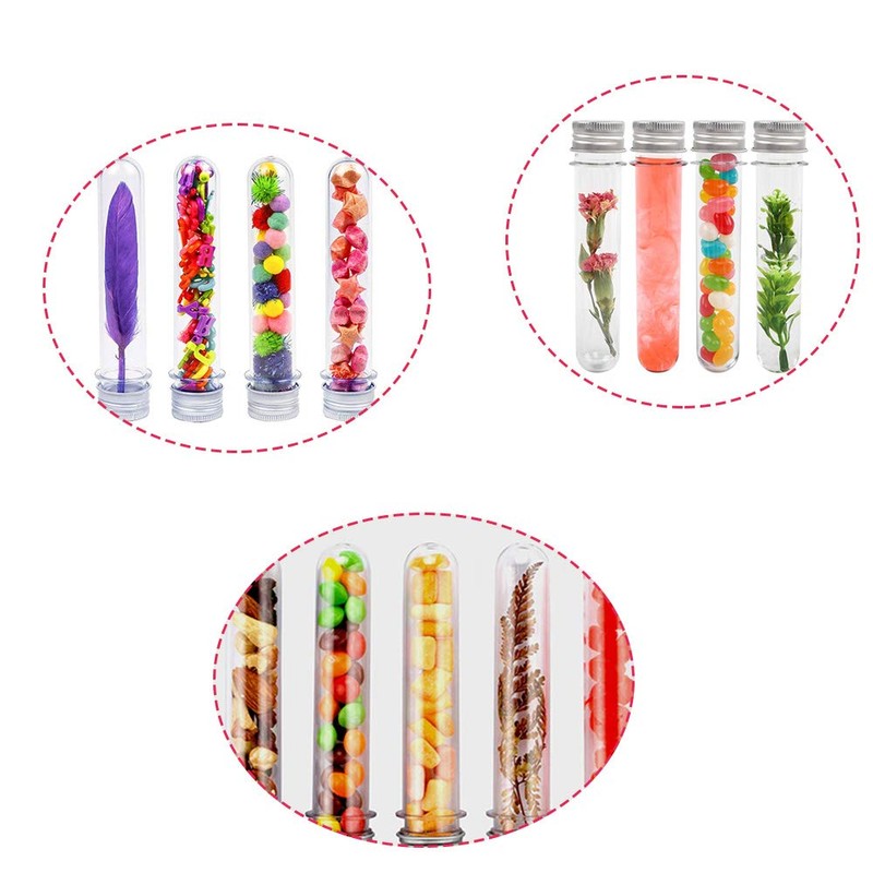 • Package:24 pcs clear plastic test tubes,each tube has a cap on it