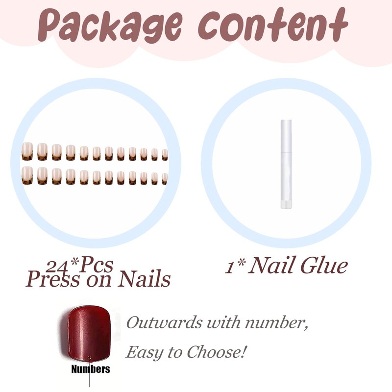 BABALAL Press on Nails Medium Square Fake Nails French Tip Brown Fall Nails w...