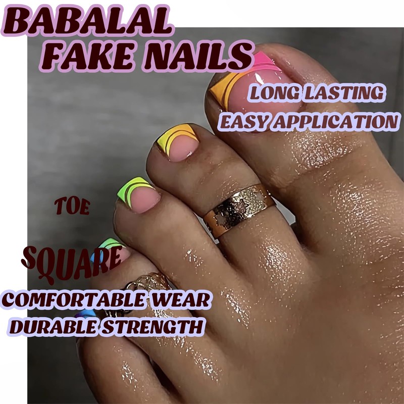 BABALAL Press on Toenails French Tips Toe Nail Press ons Fake Toe Nails Rainbow Colorful False Toenails Full Cover Acrylic Glue on Toenails with Designs Toe Press on Nails Stick on Toenails for Women