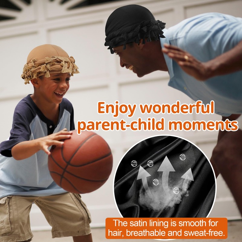 - 【Premium & Comfort】Crafted with soft modal outer & smooth satin lining, this durag for kids offers breathable, gentle comfort for 3-8-year-olds. Modal keeps heads cool during play, while satin protects scalps/hair from friction. Lightweight, durable, and non-irritating, ideal for sensitive skin, with year-round versatility for comfort in any season