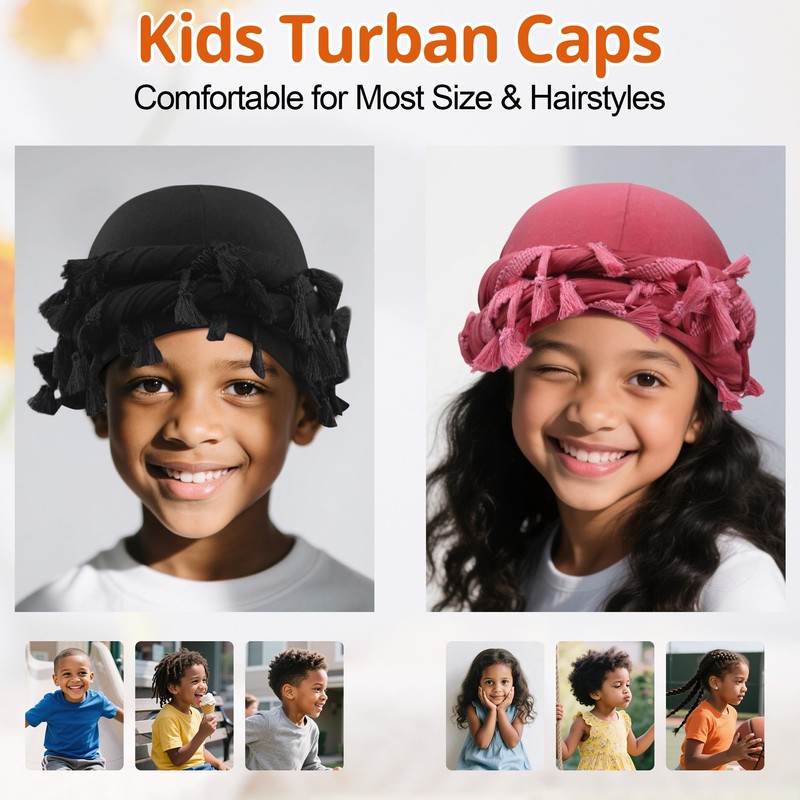 - 【Stretch-to-Fit Design】Fits head circumferences 50-54cm (3-8 years) with flexible, gentle stretch, no tightness or looseness. Elastic kids durag turban brim stay secure without marks or discomfort. Fit for your child growing, eliminating the need for frequent resizing, practical for parents, comfy for active kids
