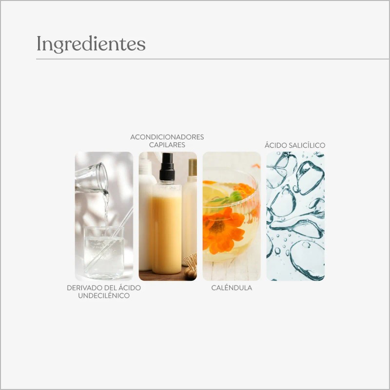 Aplicar sobre el cuero cabelludo húmedo, masajear suavemente y dejar actuar unos minutos antes de enjuagar. Usar regularmente hasta mejorar la condición.