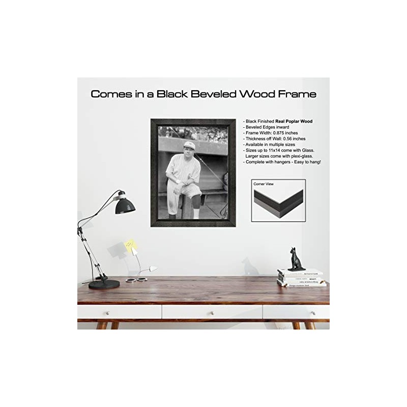 - Framed in a Black Beveled Wood Frame, this Babe Ruth photo is a great decor idea for any Home, Office, or Classroom. Multiple Sizes and Paper options available.