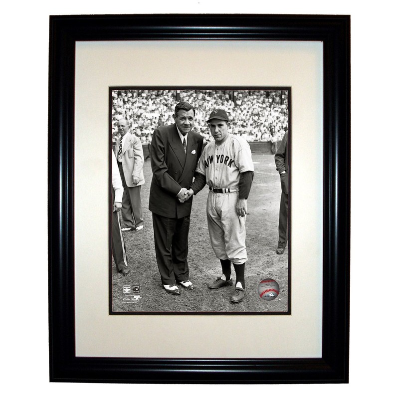 NY Yankees Hall of Famers Babe Ruth and Yogi Berra 8x10 Framed Photo in an 11x14 Frame with a White & Black Double Mat. This is a Frame Shop quality professionally made frame and mat. It is not a mass produced frame like the kind they sell in department stores. It will be securely packaged to avoid shipping damage. The frame comes with the proper hanging hardware so you can take it out of the box and hang it on your wall.