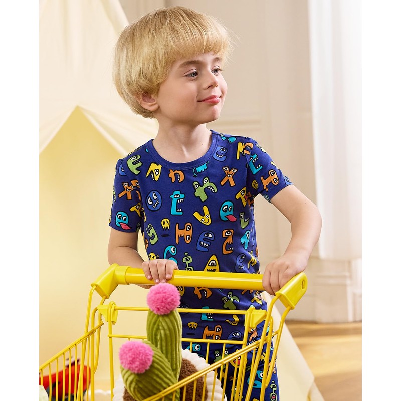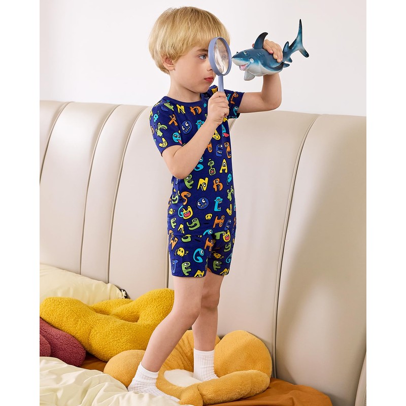 babee Reshinee Bamboo Viscose Toddler Alphabet Pajamas Boys Girls Kids Baby Cool Short Summer Pjs Set 3-4T Two Piece