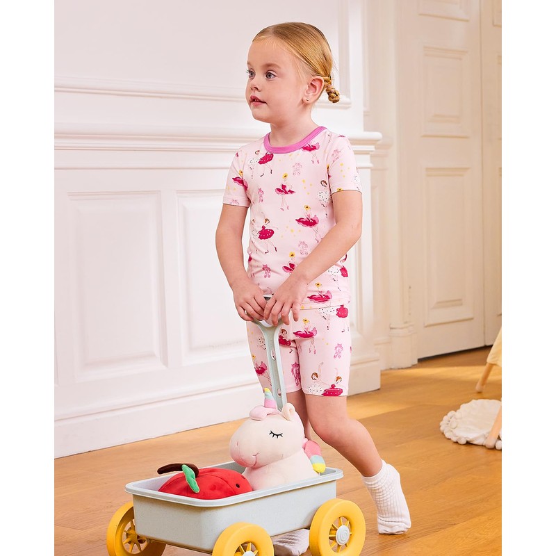 babee Reshinee Bamboo Viscose Toddler Girls Kids Pajama Sets Short Summer Cool Snug fit Sleepwear Pjs 2pcs Set 8Y