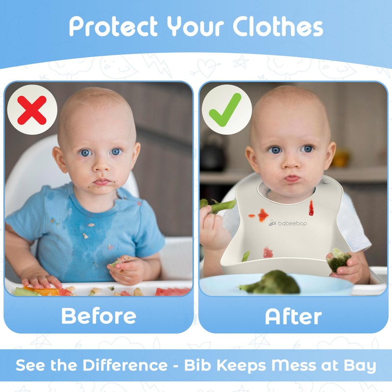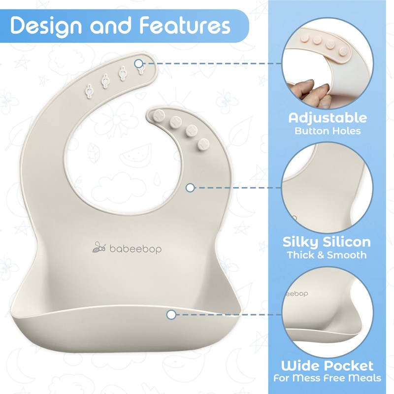 - MODERN COLOR & FRESH DESIGN - Keep your little one feeling comfy and clean with our fun-loving collection of silicone bibs. Designed in with comfort in mind, Babeebop bibs feature classic pastel colors capturing a look that's both timeless and elegant.