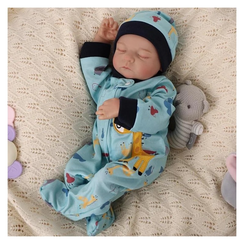 BABESIDE 2 PCS Reborn Baby Doll Clothes with Hat for 17-22 Inch Dolls, Giraffe Baby Dolls Outfit Accessories Set Boys Baby Clothing with Zipper, Blue
