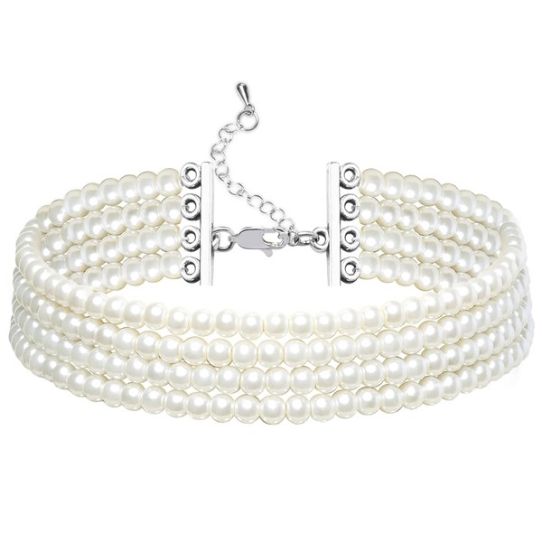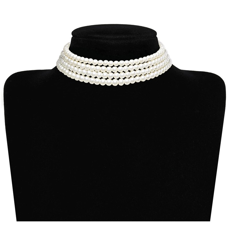 BABEYOND Round Imitation Pearl Choker Necklace Multi Strands Choker 20s Flapper Necklace Accessories for Gatsby Themed Party (4 Layer)