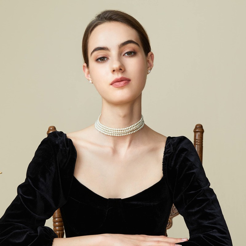 - Pearl choker necklace material: Lustrous imitation pearls. Great quality of materials and craftsmanship.