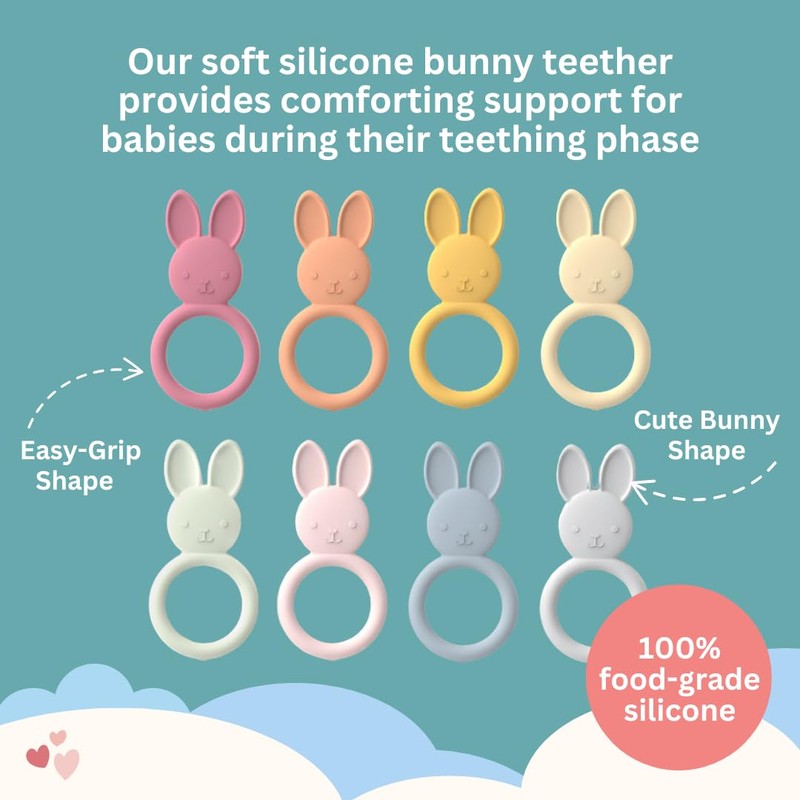 - Soft and Comforting: This soft silicone bunny teether is designed for sore gums, providing comforting support for babies during their teething phase.