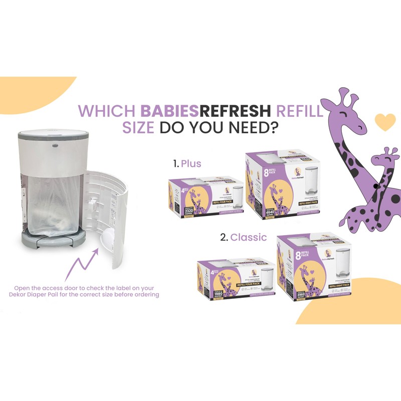 - EASY TO USE and SIMPLE INSTALLATION: just LIFT, SLIDE, PUSH and PULL and just like that you have installed your new BabiesRefresh refill into your diaper disposal bin.
