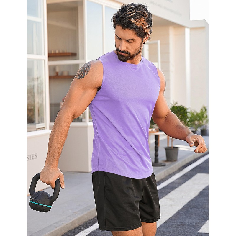 Babioboa Mens Quick Dry fit Tank Tops Bodybuilding Muscle Shirts Mesh Sleeveless Running Athletic Stringer Tee(Purple,M)
