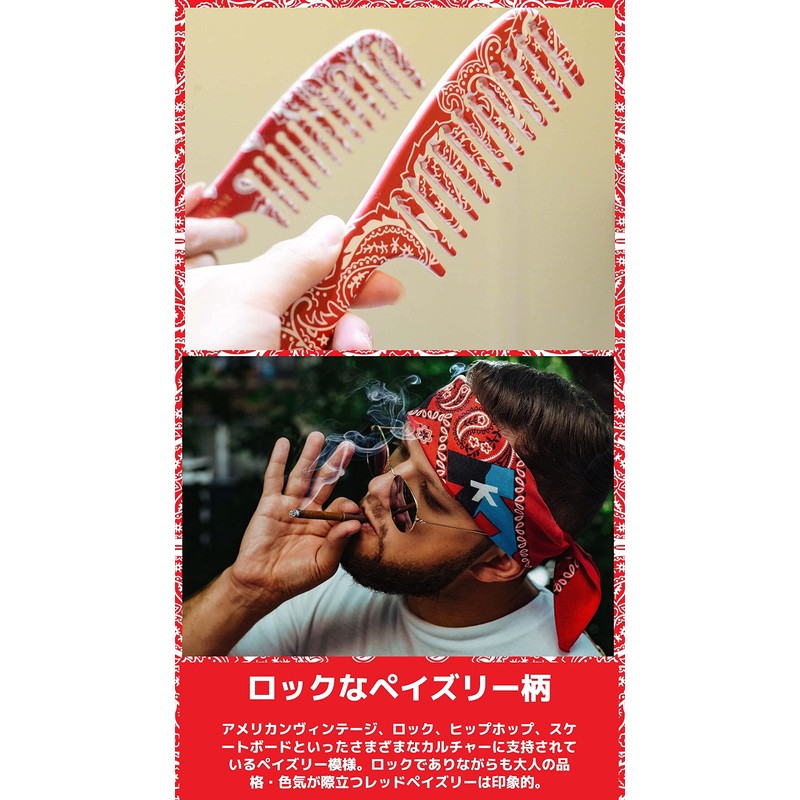 • 4. Rare Red Paisley Comb: The paisley pattern is supported by a variety of cultures such as American Vintage, Rock, Hip Hop, Skateboarding. The red paisley stands out for a mature and sexy look while it is a rock. Great for personal use or as a gift
