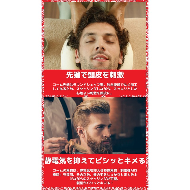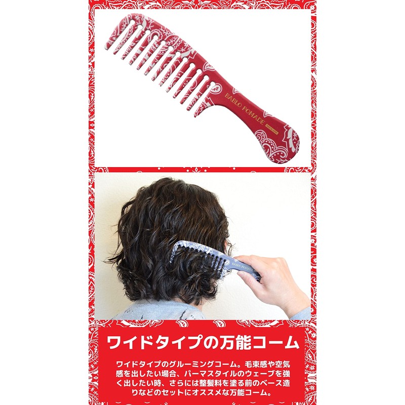 (Domestic Pomerd Brand) This is a 2-piece set of red paisley grooming comb and mesh comb, made in Japan. Classic and street design for your pomardo styling companion. Grooming Comb Features: 1. Wide all-purpose comb. Teeth: Wide type grooming comb. This versatile comb is recommended for a set of items such as creating a sense of hair and air for a strong perm style wave, or for creating a base before applying hairstyles. 2. BARBER CLASSICAL SET: Perfect for when you want to create a larger hair flow. For example, it is recommended for a classic barber or rock style (pompador, side part, all-back, crop, etc.), as well as a base for creating foundation. 3. Stronger Perma Wave: Grooming comb with coarse comb teeth. It is also useful when you want to get some serious perm style waves, such as spirals, twists, airwaves, afro and more. 4. Rare Red Paisley Comb: The paisley pattern is supported by a variety of cultures such as American Vintage, Rock, Hip Hop, Skateboarding. The red paisley stands out for a mature and sexy look while it is a rock. Great for personal use or as a gift. 5. Unique tip processing approach to scalp: The tip of the comb is also characterized by a rounded finish. Stylize and soothing stimulation to the scalp while maintaining a clean and comfortable stimulation. 6. Natural bundle. PROFESSIONAL: Professional grooming comb that creates natural bundling and air feeling. The coarse comb teeth create a comfortable feel while allowing you to set your hair firmly. Style it as you want. 7: Reduces static electricity and keeps you looking good: Comb material uses anti-static ABS resin that reduces static electricity. This allows you to style your hair while holding it firmly together. Your hairstyle will look great. Size: 8.1 x 2.0 x 0.3 inches (204 x 50 x 7 mm); Made in Japan; Mesh Comb Features: 1. Easy to make bundles: Features coarse comb teeth in two types of top and bottom. Provides natural styling that feels like you are wearing it with your hands You can make large bundles of hair. 2. Suitable for both men and women. : For men, it is perfect for finishing barber/classical styles, such as all back, combovers, pompador (regent), twovelock, crop styles, etc. It is also useful for women to create wave styles. 3. Heat and Impact Resistant: AS resin. Made of durable material that is heat and shock resistant, scratch resistant. Color: Black (main body) x Gold (logo). Size: 3.5 x 2.8 x 0.2 inches (90 x 70 x 5 mm). Country of Origin: Japan. Material: AS resin.