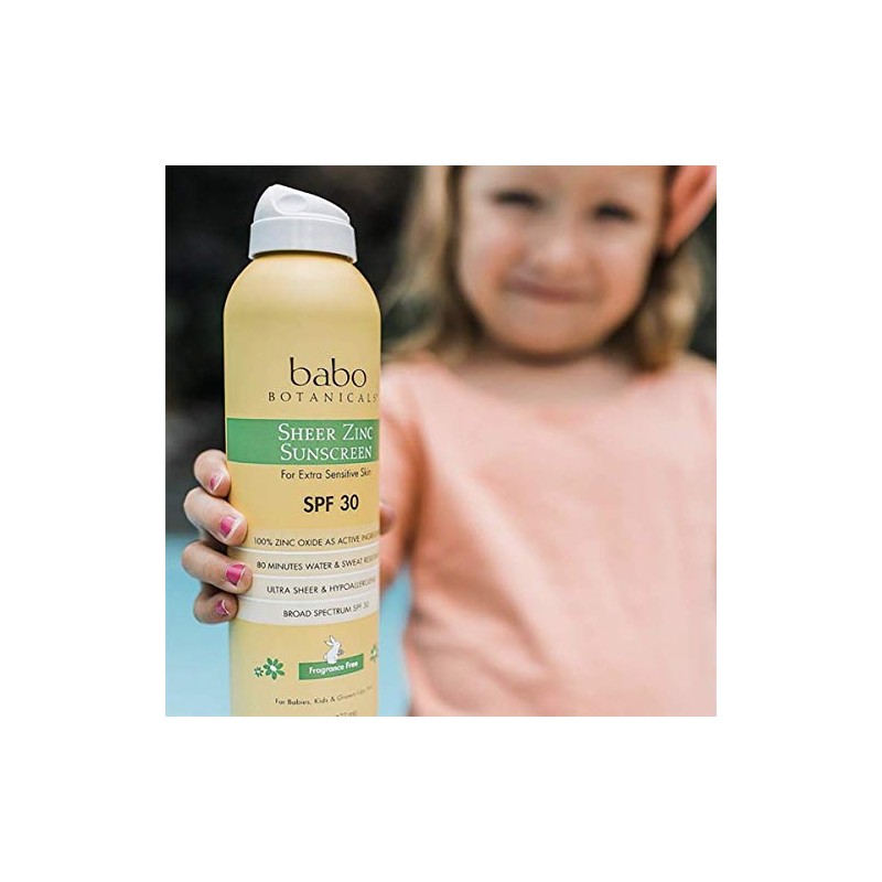 Babo Botanicals Babo Botanicals Sheer Zinc Continuous Sunscreen Spray SPF30 - Natural Zinc Oxide - Extra Sensitive Skin - Water Resistant - Vegan - Fragrance-Free - Air-Powered Spray - For all ages