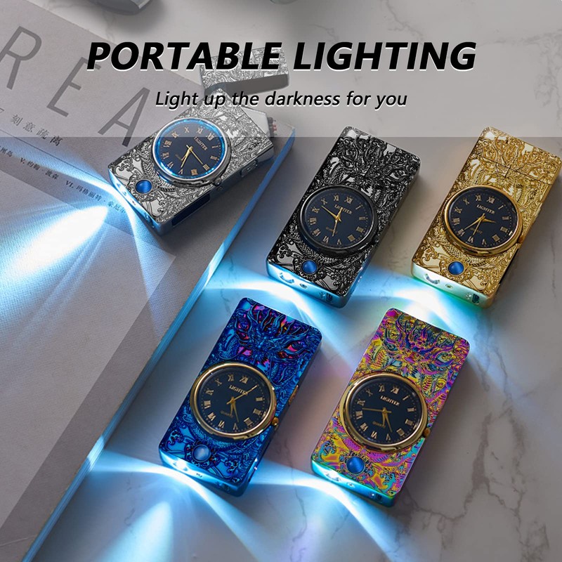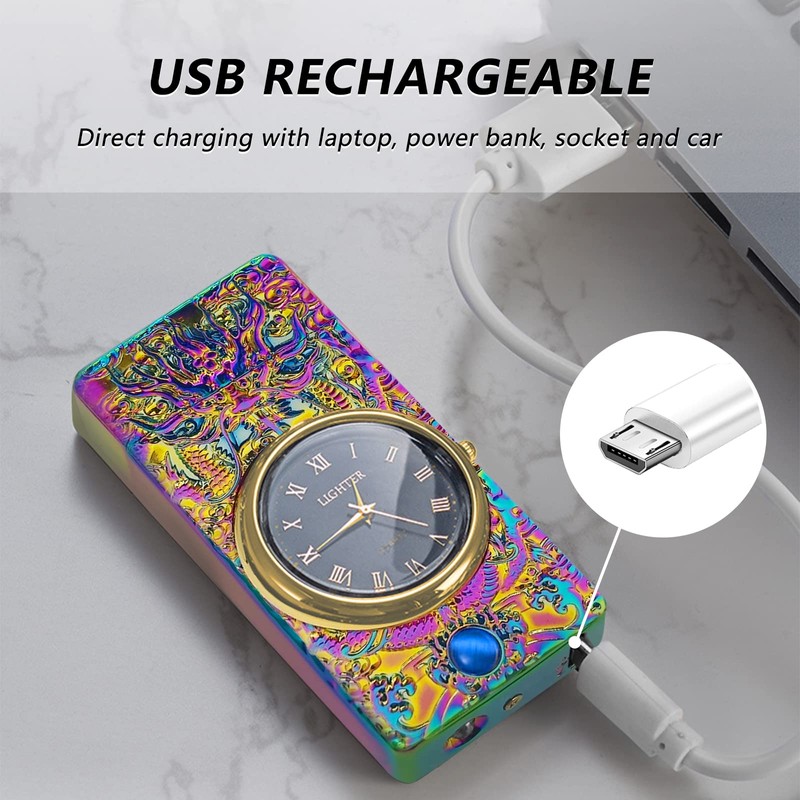 BABOBIU Encendedor eléctrico Recargable USB Encendedor portátil a Prueba de Viento sin Llama Encendedor de Arco de Plasma con Reloj Fresco Dial de Regalo para los Hombres, Novio, Marido (Multi)