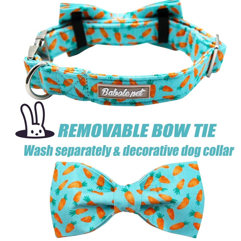 Babole Pet Easter Dog Collar with Bow Tie - Adjustable Easter Carrot Dog Collar Designer Bowtie Collar Metal Buckle Puppy Collars for Small Medium Large Dogs XS