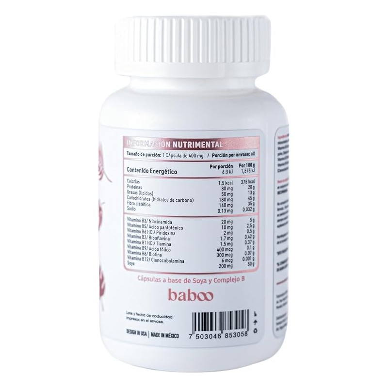 El complejo B es esencial para el funcionamiento óptimo del cuerpo, ya que ayuda en el metabolismo de los alimentos, promueve la salud del sistema nervioso, y apoya la función adecuada de las células. Baboo Ultra B combina una variedad de vitaminas B, como la tiamina (B1), riboflavina (B2), niacina (B3), ácido pantoténico (B5), piridoxina (B6), biotina (B8), ácido fólico (B9) y cianocobalamina (B12), para proporcionar una fórmula completa y equilibrada.