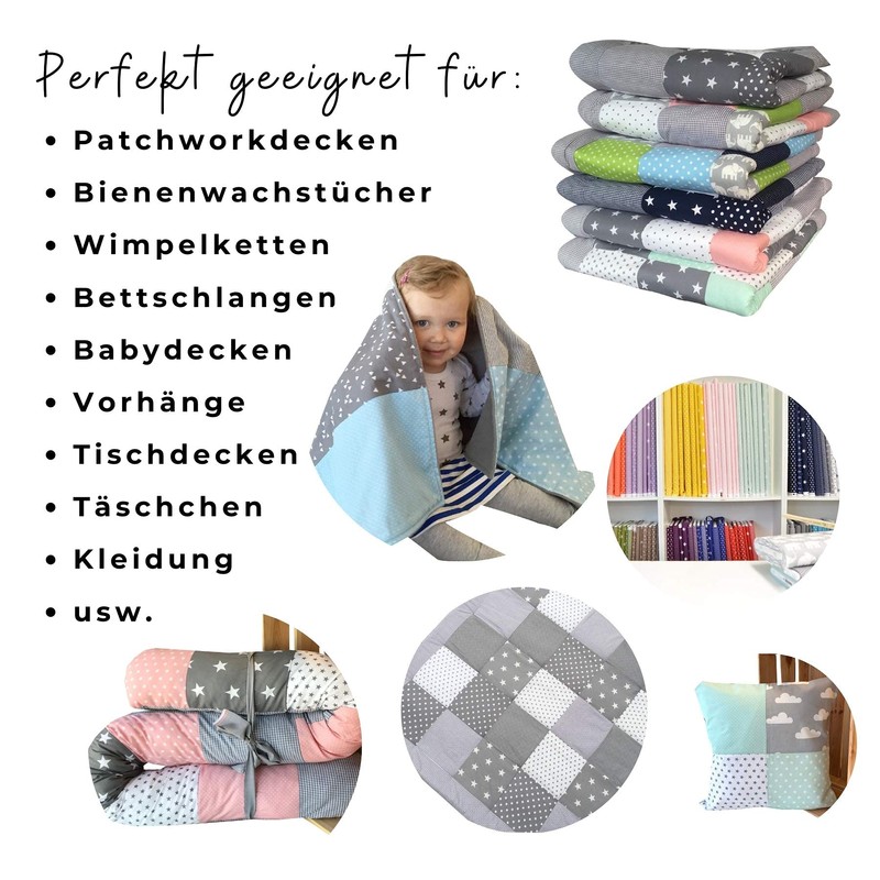 - Very high quality: fabric sold by the metre and woven fabric as handmade creative supplies | many colours | patterns | shapes | easy to work with | width: 150 cm | weight: 130 g/m² | material: 100% cotton