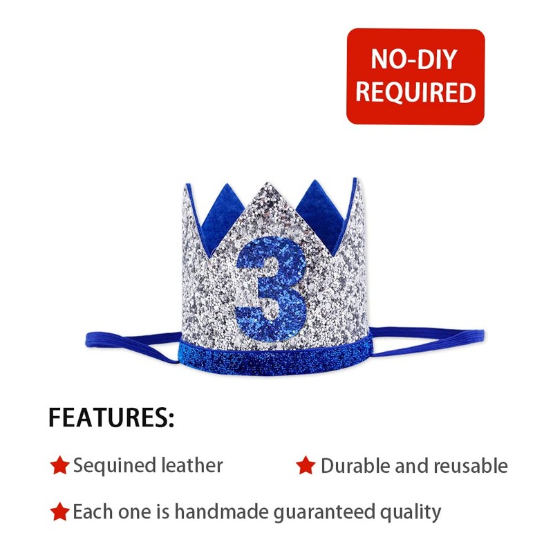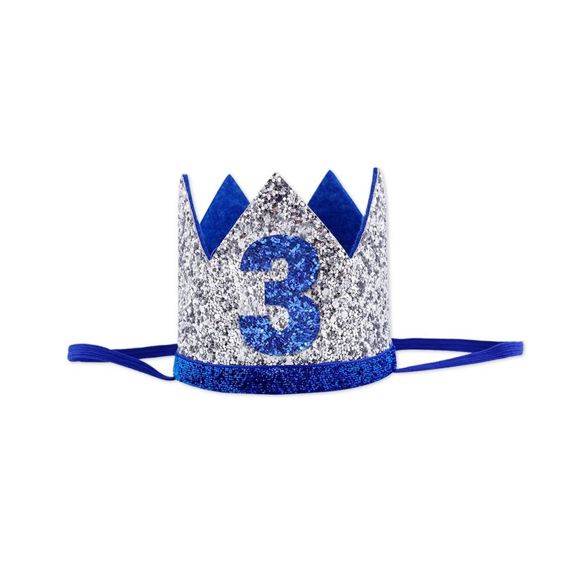 Baby 3 st Birthday Crown Hat, Birthday Party Decorations, Kids Party Props Shooting, Party Supplies (Blue Silver)