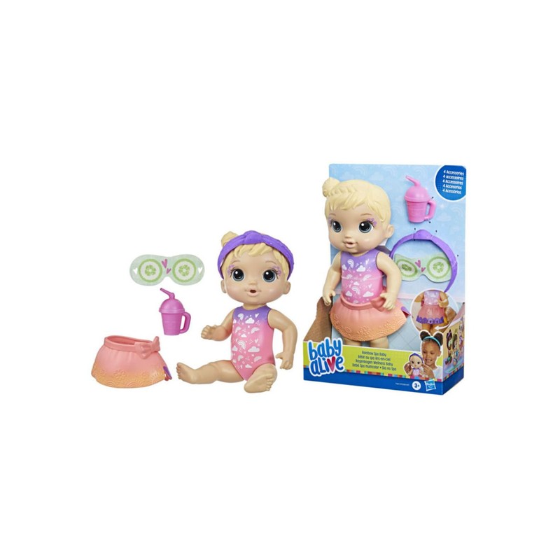 Baby Alive - Muñeca Bebé SPA Multicolor - Juguete de 25 cm con temática de SPA - A Partir de 3 años - Incluye Antifaz para muñeca y biberón - Cabello Rubio