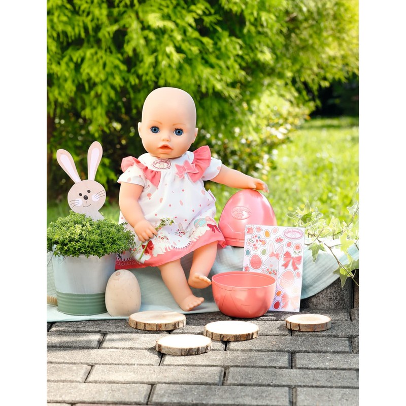 Baby Annabell Zapf Creation Easter Dress in Pink and White with Easter Bunny in Easter Egg for 43 cm Dolls, Includes Sticker Sheet for Easter, 707203