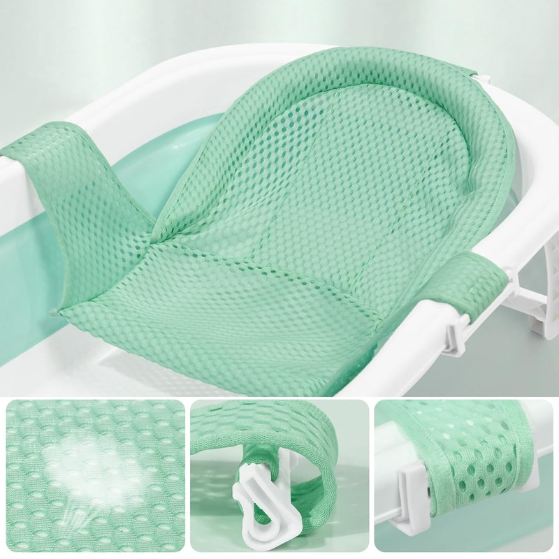 - Safe floating mesh pillow: baby skin-friendly, non-slip and breathable. Let your baby lie or sit comfortably in the bath. So you avoid choking hazard and enjoy relaxing bathing.