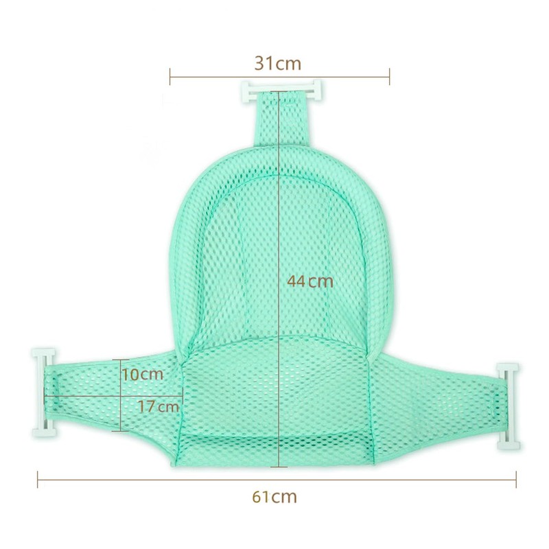- Universal and adjustable: the length of the bath net can be adjusted with five press studs to regulate the distance between baby and water surface. Fits most bath sizes. Recommended for babies from 0-18 months.