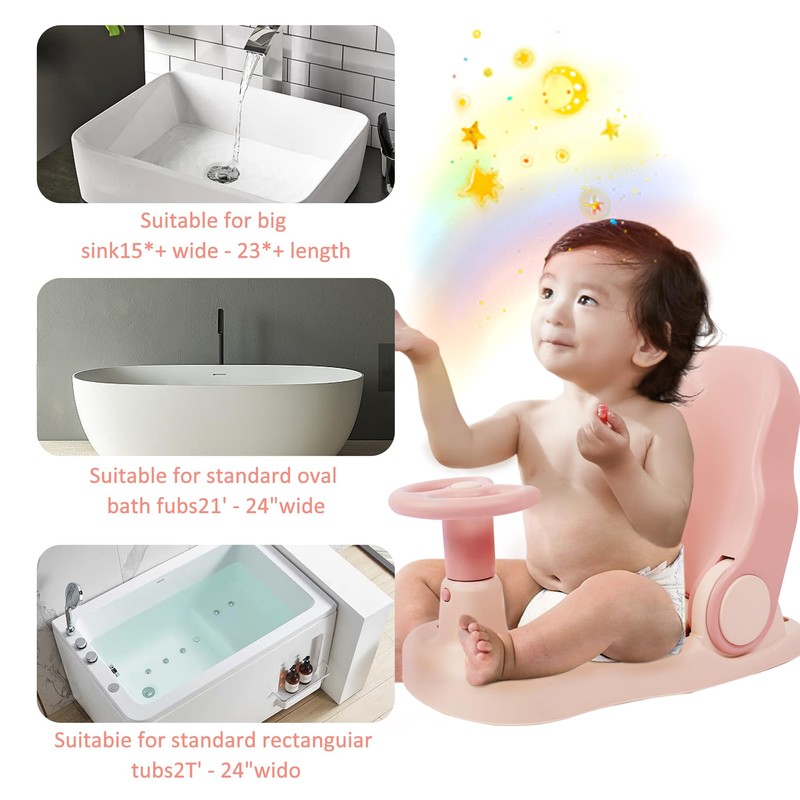 - A great helper for parents to bathe their babies: Give your children a comfortable, fun, and safe bathing experience. Provide baby bathtub seats for babies aged 6 months and above. This is a suitable girl and boy shower chair that will become a good helper for babies to bathe. Let parents bid farewell to their depressed, sore hands, and wasted energy!