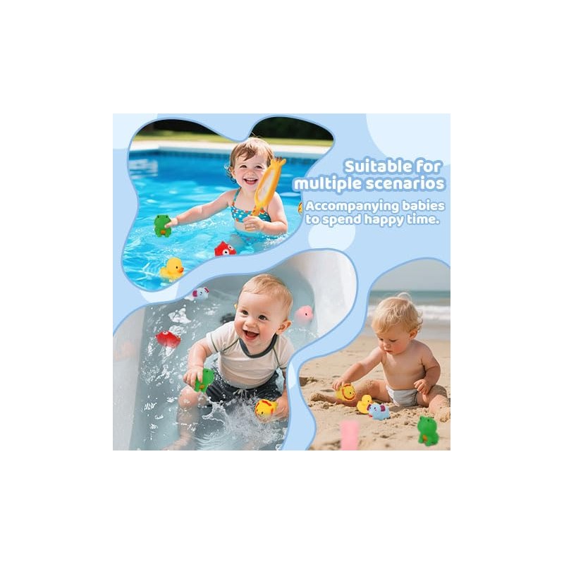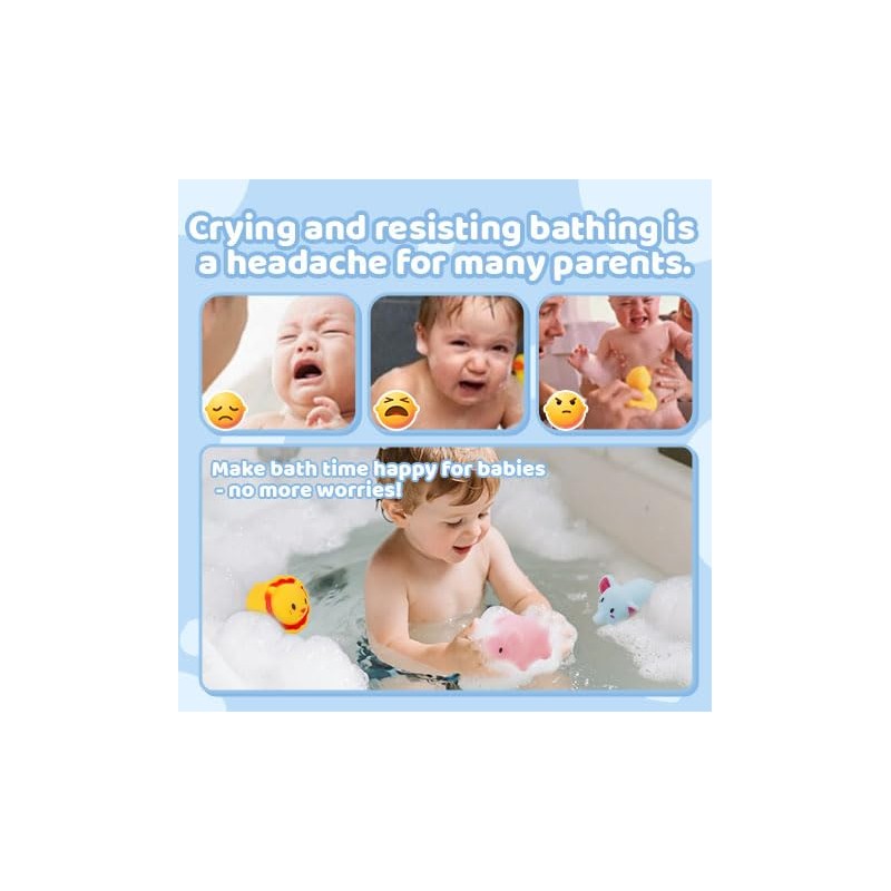 - Safe and Durable Materials This bath toy set, made of environmentally friendly PVC resin soft gel, is safe for your baby. It can withstand temperatures up to 100 degrees Celsius, ensuring worry-free playtime, even if your baby decides to chew the bath toys.