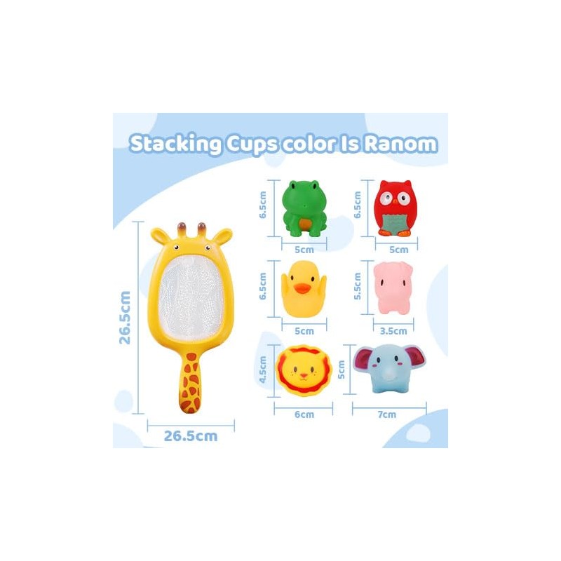 - UNIQUE GIRAFFE SHAPED NETWORK The giraffe shaped net not only adds a touch of novelty, but also makes it easier for children to fish the animal bath toys in the water, thus enhancing their bath time experience.