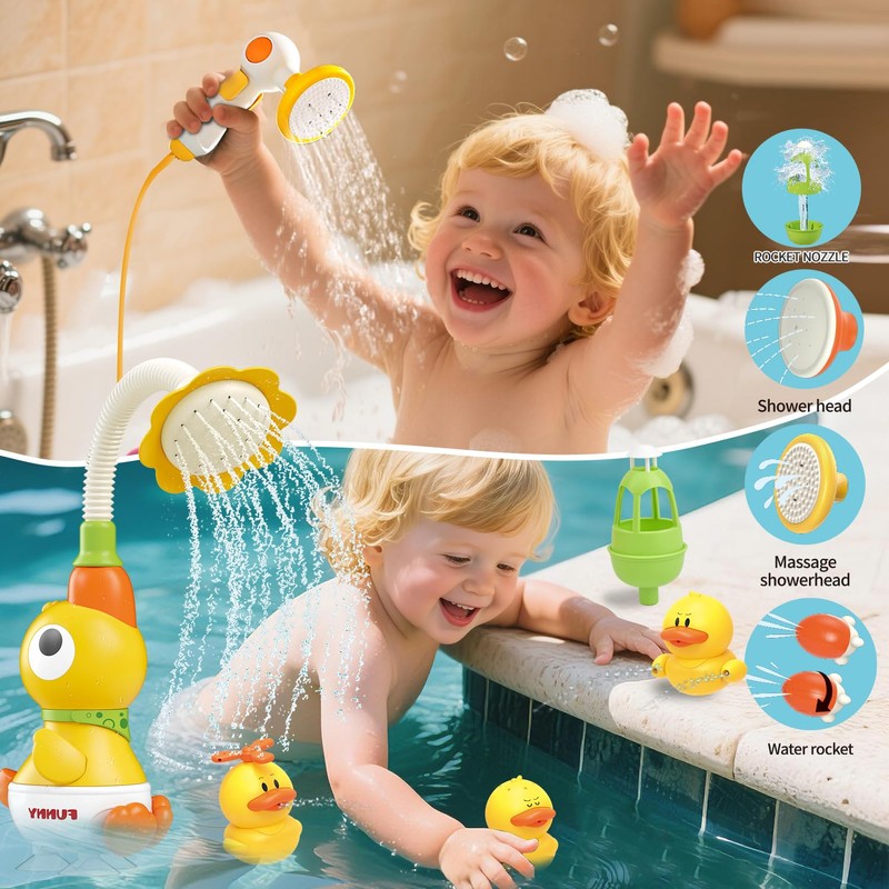 Baby Bath Toy, Water Fountain with Rotating Duck, Shower Sprayer, Kids Water ...