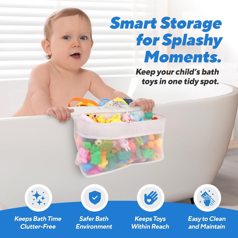 - 【Built to Last and Toddler-Friendly】Crafted with durable, sturdy materials, this bath toy container keeps toys secure and within reach. Designed for longevity, it simplifies your routine while adding a touch of order to your kids’ bathroom play space.