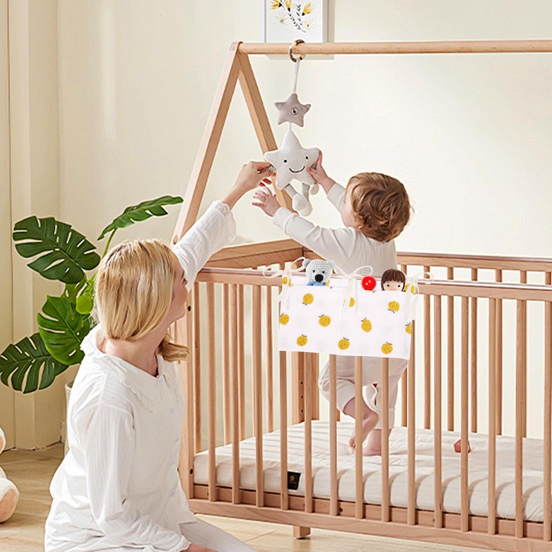 - Maximum organisation: with this practical pack of 2 baby bed storage hanging bags, you can optimally organise your baby's room. Each bag has enough space for your baby's toys, diapers, clothes and other essentials. Keep everything neat and handy without wasting valuable space.