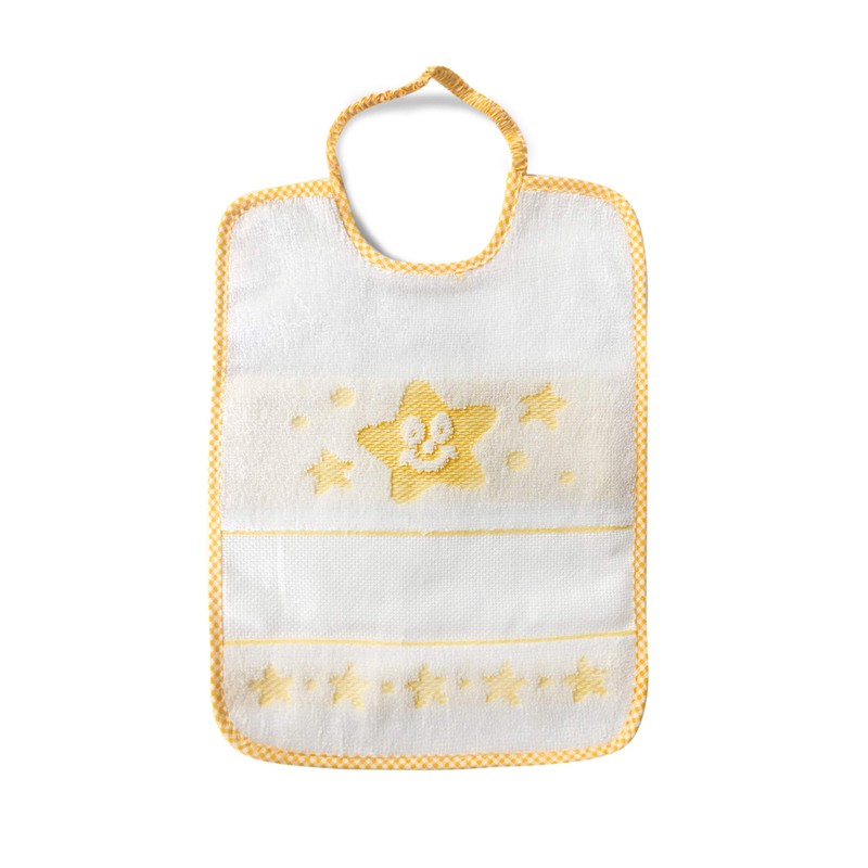Baby Bib with Embroidery of Stars with Elastic Closure – 100% Cotton – 24 x 31.5 cm, yellow