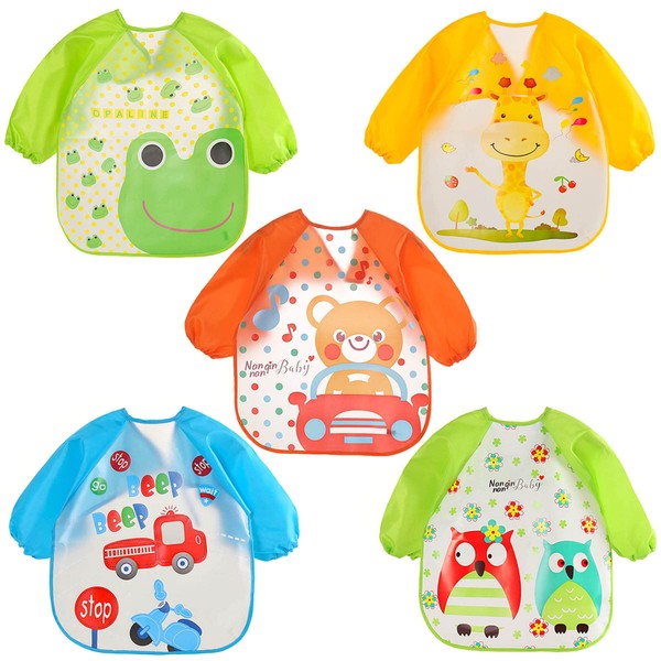 - Pack of 5 bibs feeding bibs waterproof baby bibs washable for painting play food art craft painting easy cleaning for babies and toddlers boys and girls set suitable for 6-36 months children.