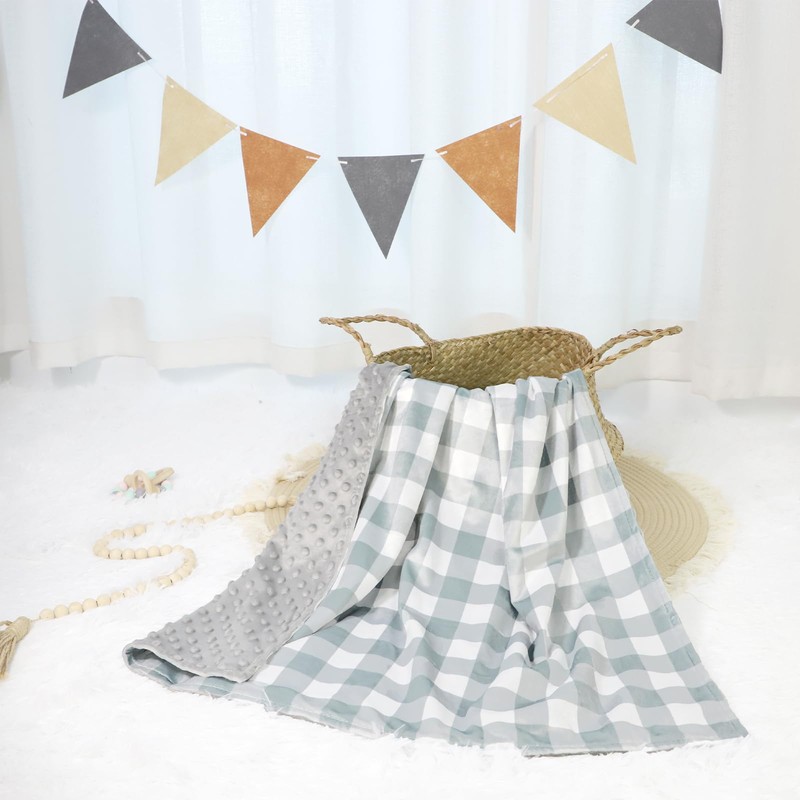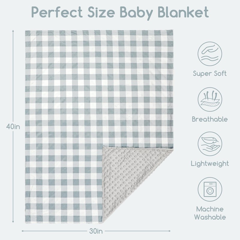 Baby Blankets for Girls, Toddler Newborn Blanket Double Layer with Dotted Backing Crib Receiving Blanket for Toddler Nursery Bed Blanket, Grey Checkered, 30x40 Inches