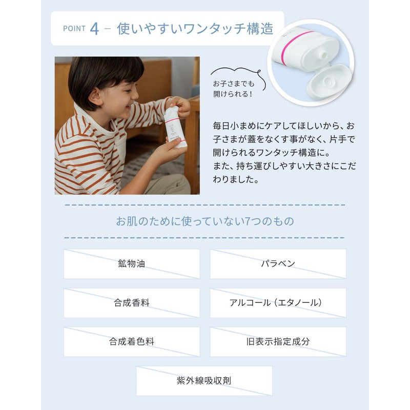 - (Formulated with 9 types of natural ingredients derived from plants) A rich blend of natural ingredients derived from plants. Whether you are looking to prevent rashes or even crinkly hands, we approach direct (Avocado oil, Shea butter, Lavender oil, Roman Chamisole flower extract, Cassis flower extract, Yagurulean flower extract, Walnut blossom extract, Turtles flower/leaves/stem extract, Fuyubo daiju flower extract). 7 additives free for your skin: We want you to use it by the whole family, so we added no additives (Does not contain mineral oil, paraben, synthetic fragrance, alcohol ethanol), synthetic coloring agents, previously designated ingredients, and UV absorbents)