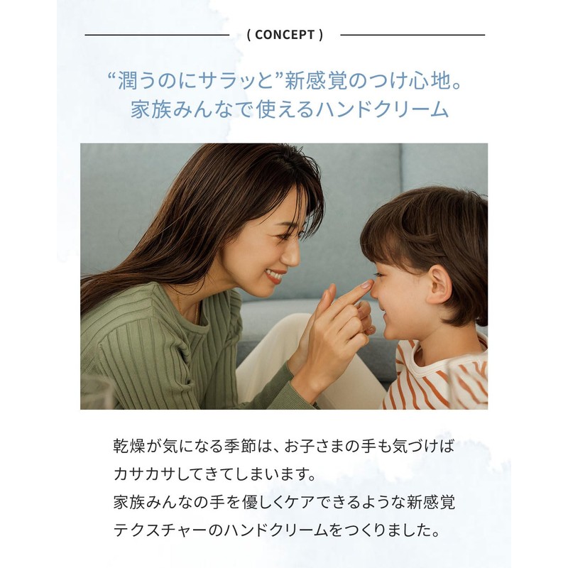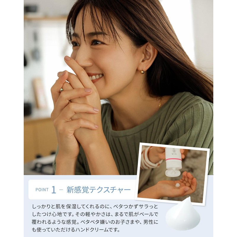 - (Unique manufacturing method for a new feel) It is non-sticky, smooth and comfortable to wear. It moisturizes your skin without stickiness. Its lightness makes it feel like your skin is covered in a veil. This hand cream can be used for men and kids who hate sticky