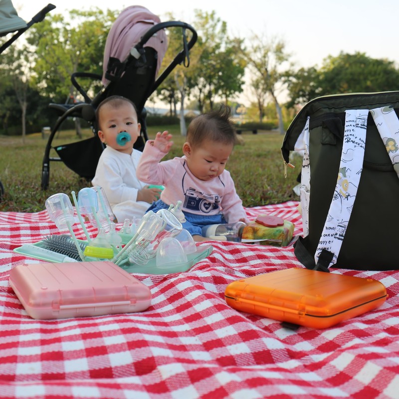 • 2. Portable Design for Home and Travel This set comes with a portable storage box and foldable bottle drying rack, making it the perfect baby travel essential. Keep your baby’s feeding tools clean and organized, whether you’re at home or on the go