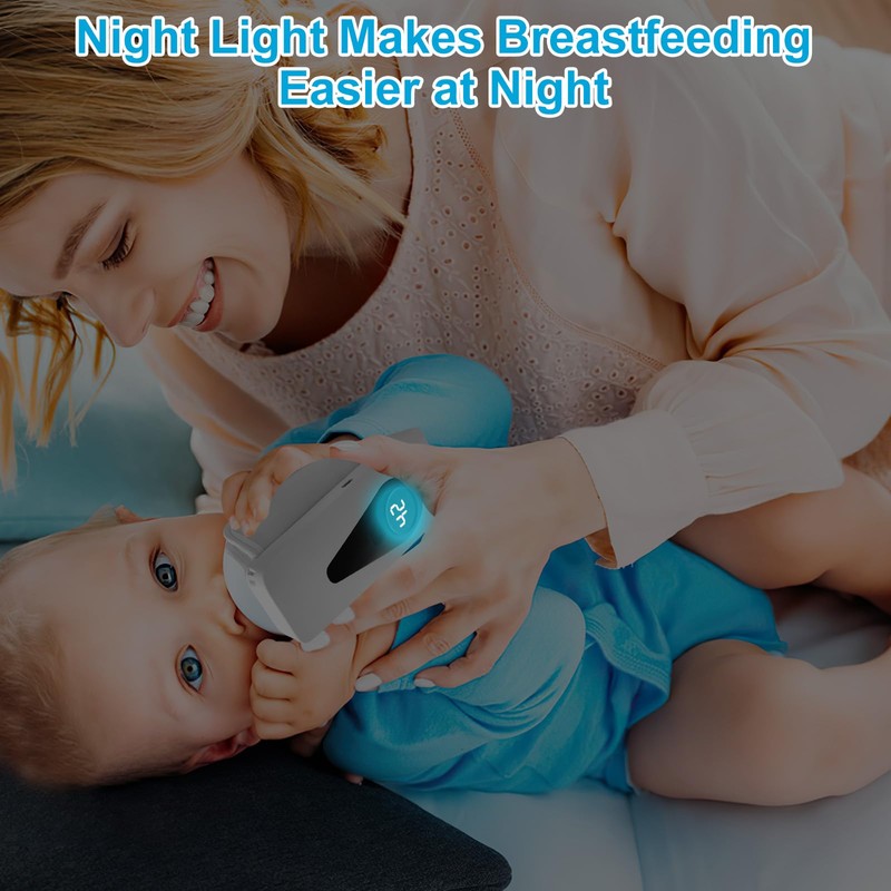 - Illuminated with Night Light The night light function makes feeding at night more convenient, and the keep warm function makes the schedule more accurate. You are always ready when your baby needs to be fed. Shorten the waiting time with the 5V-2A adapter, which heats 150 ml of water from 30°C to 40°C in about 20 minutes